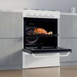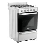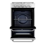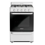 Cocina multigas de 56 cm. Color Blanco. Puerta de horno con vidrio panorámico. Capacidad del horno: 74 litros. Cajón parrilla con puerta abatible. 2 parrillas superiores de alambrón. Válvula de seguridad. Encendido manual en horno y hornallas. Termocontrol en horno. Control frontal. Perillas plásticas. 1 parrilla en horno. Hornallas medianas y grandes con sensor de flama. Cubierta sellada de acero inoxidable. Sistema de limpieza Steam clean manual. Tecnología Perfect Cook. Incluye: KIT de conversión, Kit de instalación y antivuelco. Origen Argentina.