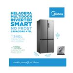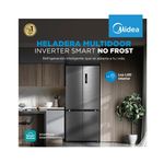 La Heladera Inverter Smart NoFrost Midea Multi Door de 475 litros es la solución ideal para quienes buscan eficiencia y funcionalidad en su cocina. Con un diseño elegante en gris oscuro, esta heladera cuenta con cuatro puertas que optimizan el espacio y facilitan el acceso a tus alimentos. Su tecnología inverter garantiza un funcionamiento silencioso y un ahorro energético, clasificándose con una eficiencia A+. El sistema NoFrost evita la acumulación de hielo, manteniendo tus alimentos frescos y en perfectas condiciones. Con una capacidad total de 475 litros, incluye un freezer inferior de 135 litros y una heladera de 340 litros, ofreciendo suficiente espacio para almacenar todo lo que necesites. Además, cuenta con estantes de vidrio templado y un cajón de vegetales que preserva la frescura de tus productos. La heladera está equipada con un panel de control digital que permite ajustar la temperatura de manera precisa. Su sistema multi air flow asegura una distribución uniforme del frío, mientras que la alarma de puerta abierta y el filtro desodorizador añaden un nivel extra de conveniencia y cuidado. Ideal para familias o quienes disfrutan de cocinar, este modelo combina tecnología avanzada con un diseño práctico, convirtiéndose en un aliado indispensable en tu hogar. Con la Heladera Midea, cada comida será una experiencia placentera, manteniendo tus ingredientes siempre frescos y accesibles.