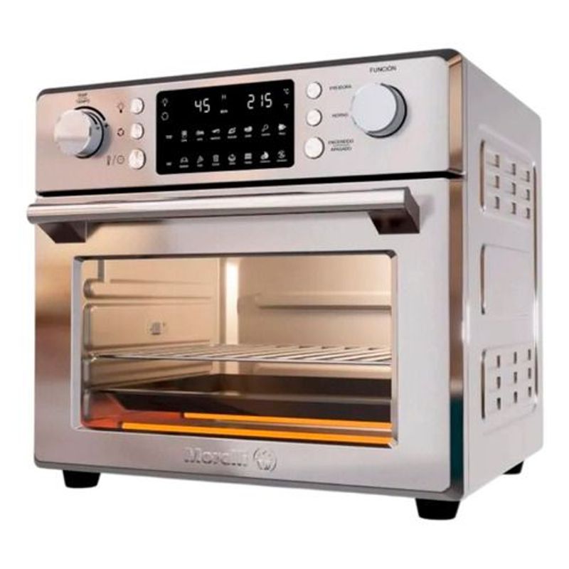 Descubre el Horno Freidora de Aire Eléctrico Morelli Bari Digital Spiedo, una solución versátil para quienes buscan una cocina más saludable y eficiente. Con su capacidad de 25 litros, este electrodoméstico permite preparar una variedad de platillos, desde crujientes papas fritas hasta suculentos asados, todo con un mínimo de aceite. Su diseño en acero inoxidable no solo aporta elegancia, sino que también garantiza durabilidad y fácil limpieza.