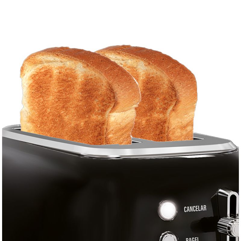 La Tostadora Eléctrica Liliana AT928N Retrotoast en color negro es la elección perfecta para quienes buscan un diseño elegante y funcional en su cocina. Con una potencia de 850 W, esta tostadora garantiza un tostado uniforme y rápido, ideal para comenzar el día con un desayuno delicioso. Su capacidad para dos rodajas permite preparar tostadas para una o dos personas, mientras que sus seis niveles de tostado ofrecen la versatilidad necesaria para satisfacer todos los gustos. Además, es apta para bagels, lo que la convierte en una opción versátil para disfrutar de diferentes tipos de pan. El diseño práctico incluye una bandeja recoge migas que facilita la limpieza y un enrollacable que ayuda a mantener el espacio ordenado. Fabricada en plástico de alta calidad, la Tostadora Liliana combina durabilidad con un estilo retro que se adapta a cualquier decoración de cocina.